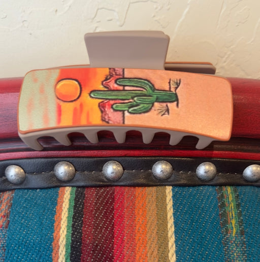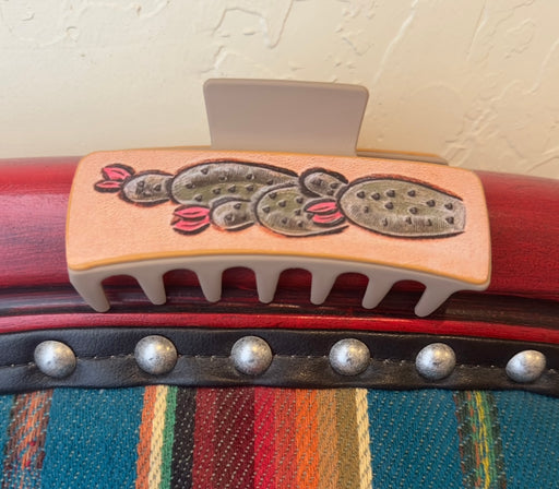 Tan hair clip with desert cactus!
