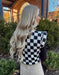 Stay cozy without the bulk. This checkered crop black and white puffer vest layers effortlessly over your favorite long sleeve shirts & sweaters, delivering warmth exactly where you need it. The charming ruffle sleeves adds a feminine touch that elevates any casual outfit. Perfect for transitional weather or layering, this versatile piece brings texture and style to your wardrobe while keeping you comfortable and chic.