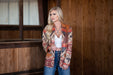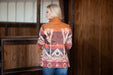 Long sleeve Aztec button up with tan detail & concho buttons!