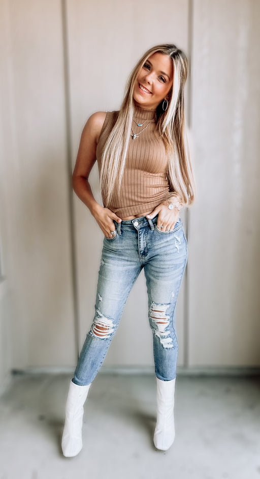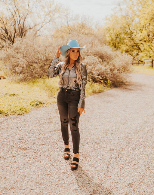 Elevate your denim game with our Western Chic Jeans. These high rise crop jeans feature a frayed hem for a trendy touch. Made with high quality den...