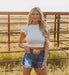 MID RISE DISTRESSED STRETCHY MEDIUN WASHED BLUE JEAN SHORTS!
