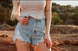 Mid rise rhinestone light blue jean shorts!