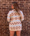 The Aztec cardigan features a blend of tan, brown, and turquoise colors, enhancing versatility and compatibility with various outfits. Its button design provides ease of wear and layering options, making it suitable for different climates and settings. This cardigan combines functionality with style for practical use.